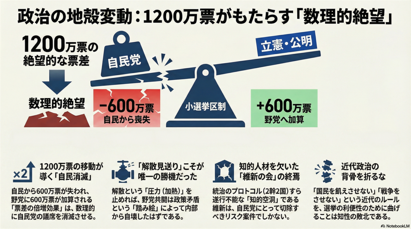 1. 政局の地殻変動:1200万票がもたらす数理的絶望
