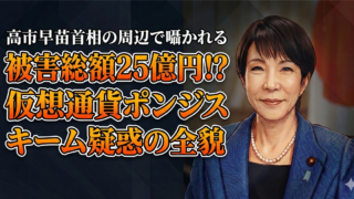 高市早苗 被害総額25億円!? 高市早苗首相の周辺で囁かれる仮想通貨ポンジスキーム疑惑の全貌 高市首相を揺るがす「早苗トークン」25億円詐欺疑惑を解説。運営会社の登記住所が総理の地元事務所と完全一致する事実や、側近が絡む不透明な資金ネットワークを紐解きます。首相が法的措置を避ける理由と、議員辞職レベルの疑獄事件の核心に迫ります。 2026.03.04 高市早苗