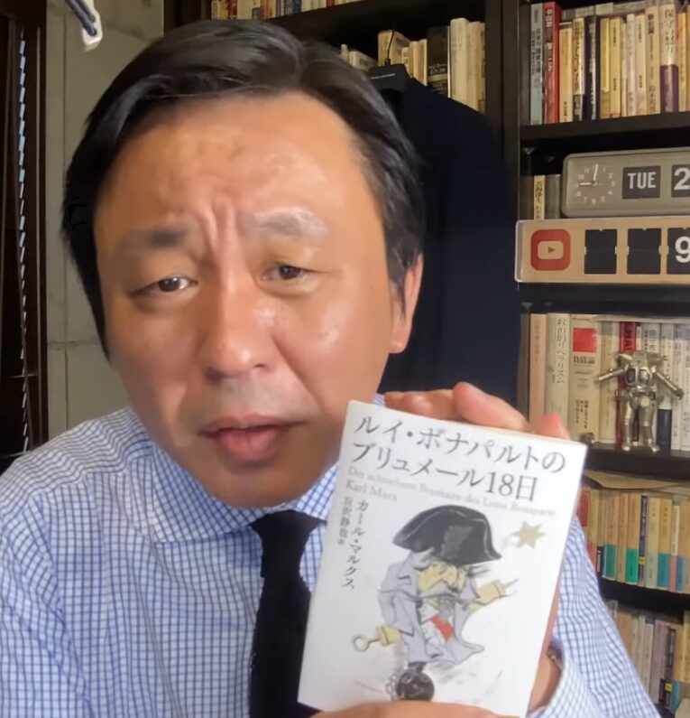 今、皆さんに問いたい。現代日本のこの絶望的な政治状況を前にして、我々は何を読み、どう武装すべきなのか。その答えは明確です。マルクスが19世紀フランスの政治状況を活写した古典ルイ・ボナパルトのブリュメール18日です。これは単なるカビの生えた歴史書などでは断じてない。2026年の日本において読まれるべき、最強の実用書であり、現代の茶番を読み解くための完全な解読コードなのです。