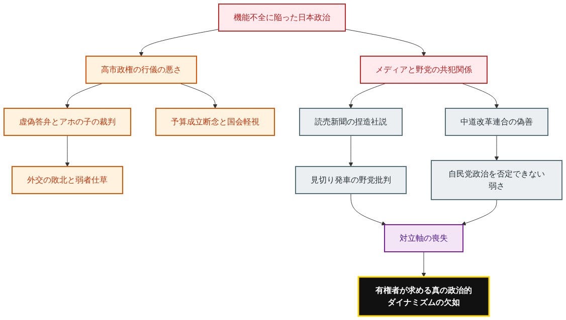 【結論】 現在の日本政治は、知性も行儀も欠如した高市政権による「アホの子の裁判」と化している。しかし、真に絶望的なのは権力の腐敗だけではない。まだ始まってもいない国会質疑を「揚げ足取り」と批判する読売新聞の捏造社説と、自民党政治を真っ向から否定できず、リングの上で握手を求めるような中道改革連合の偽善こそが、政治からダイナミズムを奪い、有権者を愚弄している元凶である。