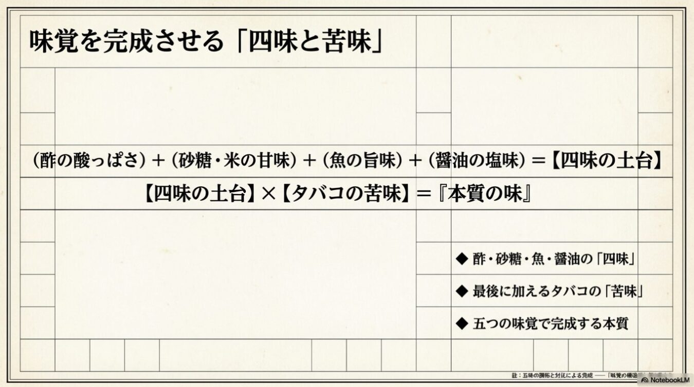 酢・塩・甘味・旨味に「タバコの苦味」が加わる必然