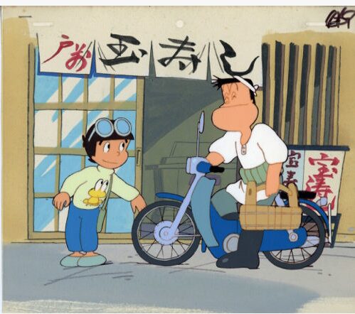 その証拠に、『ど根性ガエル』の梅さんはずっと桶を担いでスーパーカブに乗って出前をしているし、ひろしと梅さんはいつも外で出会うだろう 。さらに言えば、60年前に中田ダイマル・ラケットがやっていた漫才のネタがある 。出前中の寿司屋の兄ちゃんが車とぶつかって血だらけで歯も抜けて足も折れたのに、すぐ自転車に乗って出前に行ったという話で、「歯折れとったんちゃうんかい」「下駄の歯が言うて」、「血だらけやったんちゃうんかい」「イカの血が言うて」というアレだ 。つまり、寿司屋というのは出前中心の商売であり、決して「気取ってカウンターで食べる」ような高尚なものではなかったのだ。
