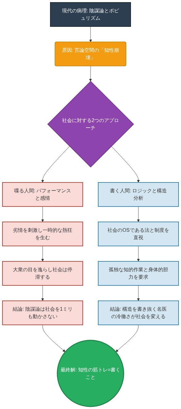 結論を言おう。陰謀論とポピュリズムという『お喋りの病』に対抗できる唯一のワクチンは、これに尽きる。『書くこと』という孤独で泥臭い物理運動によって、自らの理性を鍛え上げること、ただそれだけだ。