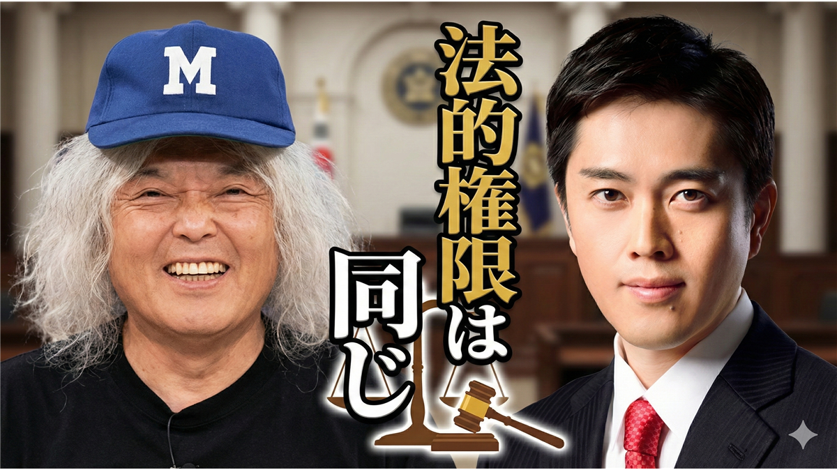 つまり、法律を制定する権限において、吉村知事と、大阪・新世界にいる一般市民との間に法的な差はないのです。これは単なる役割分担の問題ではなく、近代国家の根幹である「誰が、何を決定する権限を持つか」という厳格なルールの問題です。その点において、知事と一市民の間に法的な優劣は存在しないのです。「通天閣のおっさんが高市早苗議員と話し合って法律を決めたらおかしい」のと同じ理屈で、吉村知事が国政マターである選挙制度の決定に関わることは、法的に全く正当性がありません。