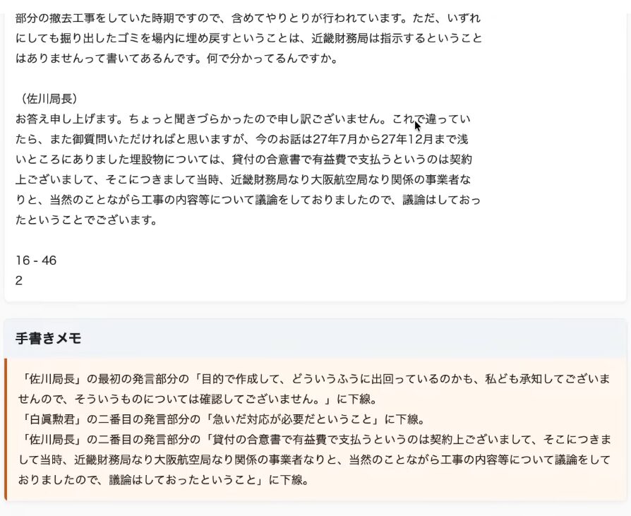 2. AIが暴く財務省の壁と赤木さんの「息遣い」:デジタルデータをわざわざ紙に印刷してPDF化するという財務省の姑息な隠蔽工作に対し、AI OCRの力技を用いて「手書きメモ」と「マーカー」のみを抽出。赤木さんがどこに苦悩し、何に注目していたかを視覚的に蘇らせた。