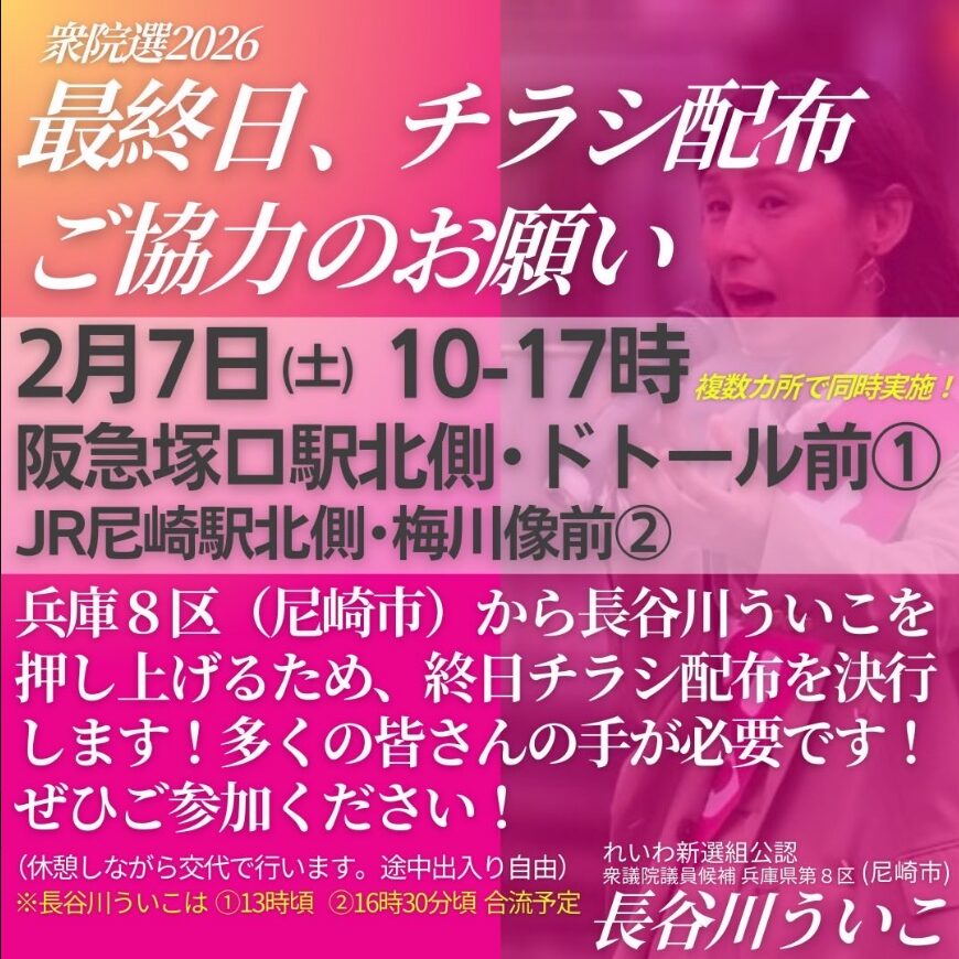 2026/1/19兵庫県知事選挙であれだけ長谷川うい子が稲村を応援したのに7割が斎藤元彦に投票した兵庫のれいわ支持者はバカばっかりだけど、れいわ支持者以外の人は恩返しのためにも兵庫8区に出る長谷川うい子さん応援しようぜ