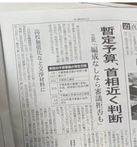この歪んだ状況下で、圧倒的多数を誇る与党という「数による暴力」に対し、参議院において「暫定予算を組んででも、本予算の審議は慎重に行うべきだ」と踏みとどまっている野党(立憲民主党)の姿勢は、極めて真っ当であり、正当に評価されるべきだ。