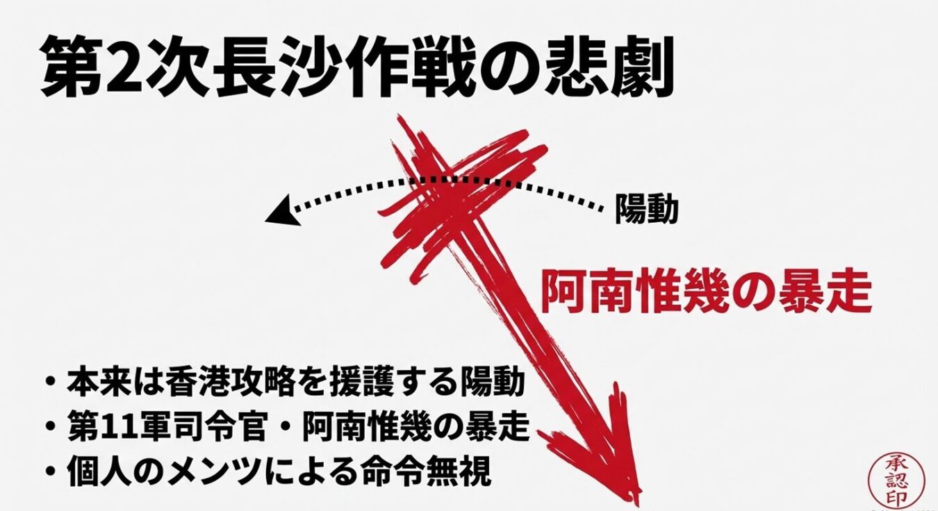 3. 第2次長沙作戦という狂気:単なる陽動作戦であったはずが、阿南惟幾の個人的な「メンツ」により暴走。敵の縦深陣地「天炉作戦」に誘い込まれボロボロになりながら、この命令違反の愚将が後に陸軍大臣へと出世する狂気の人事こそが敗因の本質である。