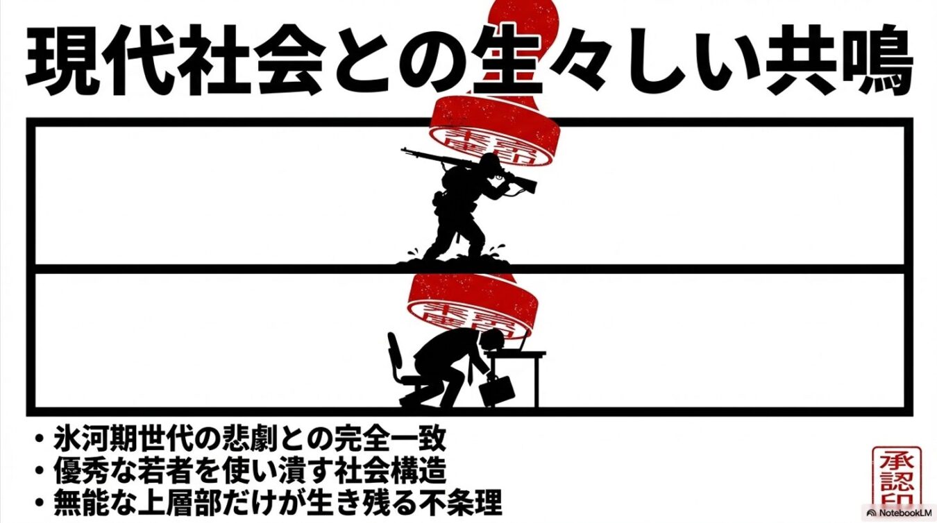 この事実の羅列を読み進めるうちに、私はどうしようもない怒りと哀愁に襲われた。最前線で無惨に消費され、使い捨てられていった現場の兵士たちの姿が、現代の「就職氷河期世代」の境遇と痛烈に重なり合ったからだ。