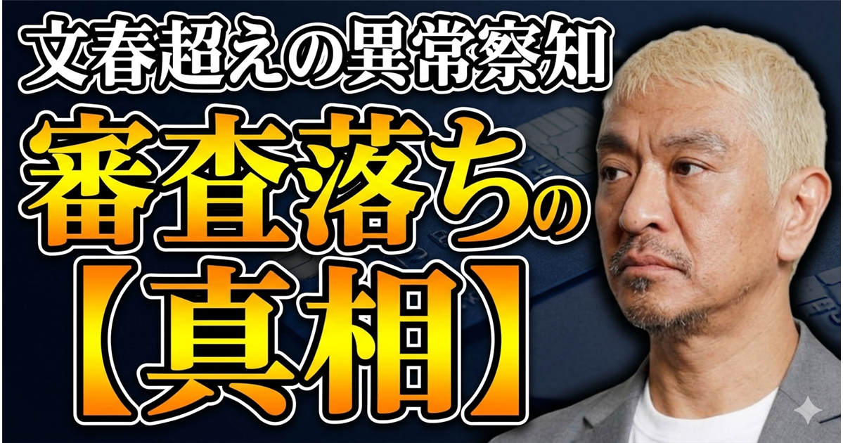 - 文春より早い異常検知: 日本一稼ぐ芸人である松本人志が審査に落ちたのは、カード会社が週刊誌の噂ではなく、データ上の「異常なカネの使い方(定量情報)」を機械的に弾いた結果である 。