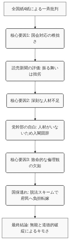 臨時国会閉幕後、全国紙が維新に対して下した厳しい評価は、単発的な政治批判ではない。それは、一連の行動によって露呈された、政党としての資質の欠如に対する当然の帰結であった。菅野完氏の視点を通してこの現象を分析すると、メディアと世論が共有する「維新はキモい」という感情の本質が見えてくる。