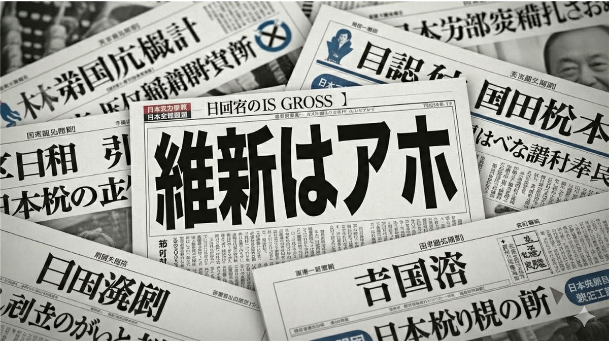 臨時国会が閉幕した後、日本の政治報道において極めて異例の事態が発生した。思想的立場を異にするはずの日経、読売、朝日、毎日の大手全国紙4紙が、まるで示し合わせたかのように日本維新の会に対して一斉に批判的な論陣を張ったのである。これは単なる政策批判や与野党の駆け引きに対する批評を超えた、より根源的な拒絶反応の現れと言える。菅野完氏は、この統一された拒絶反応を、一つの、しかし最も的確で残酷な表現に蒸留する。「維新はキモい」と。本稿では、菅野氏の分析を基に、稚拙な国会戦術から深刻な倫理問題に至るまで、その証拠を丹念に検証し、この広範な感情の背後にある核心に迫る。