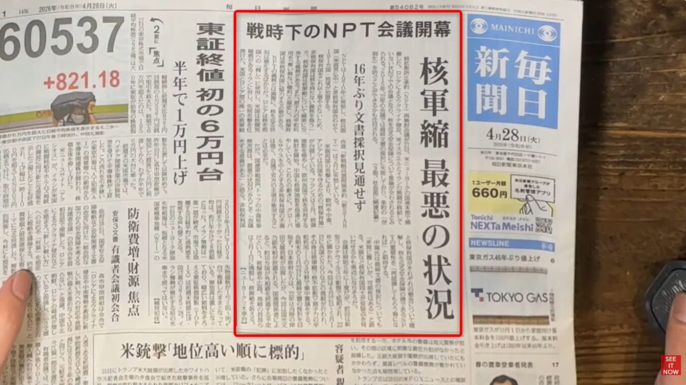 新聞を読んでるとね、もう皮膚が爛れそうになるぐらい憤慨することがあるんですよ。今、ニューヨークの国連本部でNPT(核拡散防止条約)の会議が開催されてます。ウクライナやイランでドローンとAIが飛び交う戦争をやってるこの時代に、核の廃絶すらできないのは本当に危ない状況なわけです。それなのに、ロシアとアメリカという大国のエゴにズルズル引きずられて、なんと共同文書すら採択できない見込みだと言う。