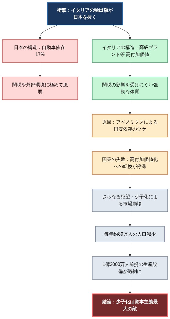 『イタリアの輸出額が日本を抜いた日。アベノミクスの失敗と「高付加価値」戦略の差、そして少子化という資本主義の真の敵』
