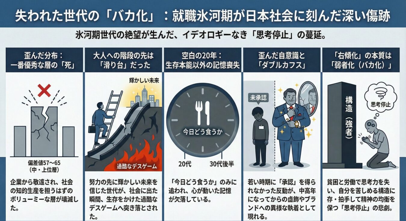 ■ 【徹底解説】失われた記憶と「日の丸」への逃走 ― 氷河期世代が見た「滑り台」と日本社会の「バカ化」
