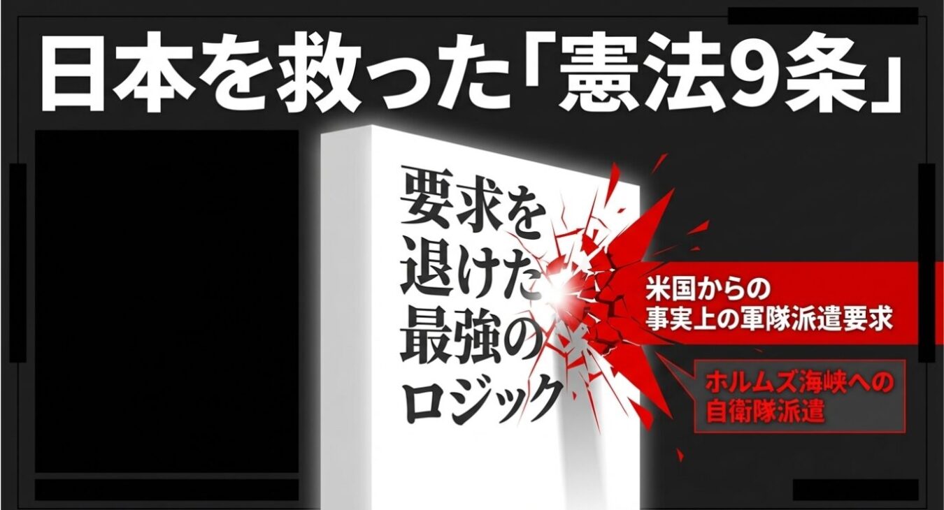 - 9条が若者の命を救った事実: ホルムズ海峡への自衛隊派遣要求に対し、憲法9条を理由に拒否したことで、他人の戦争で日本人が死ぬ事態を完全に回避した。