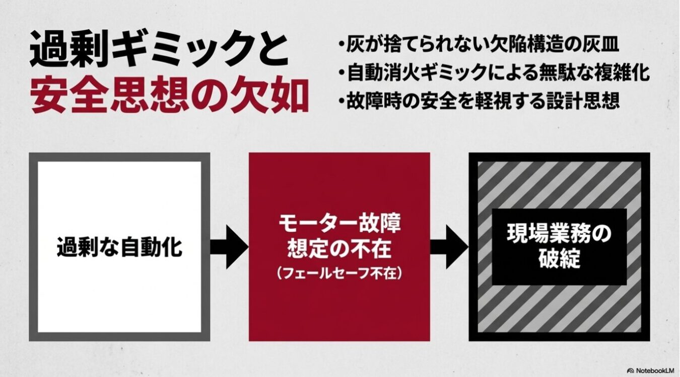 灰を捨てられない「蜂の巣みたいな鉄の筒」:フェールセーフなき業務設計の末路