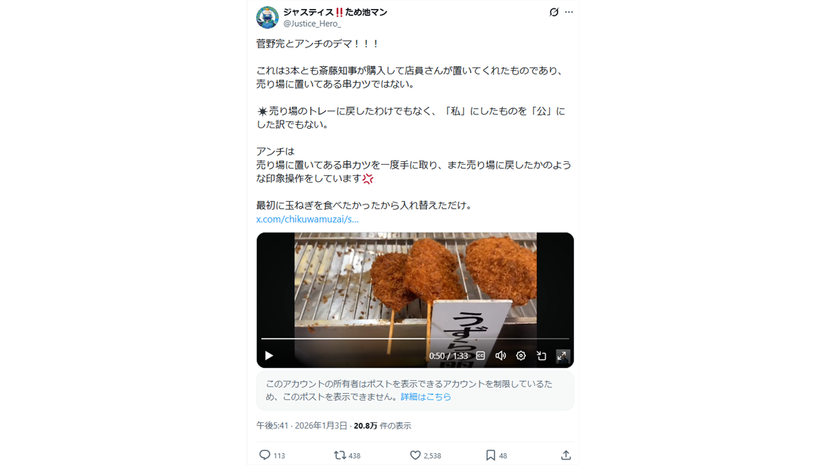 【結論】 斎藤知事の「串カツ事件」は単なるマナー違反ではない。これは彼の「決断力の欠如」と「公私の使い分け」の矛盾を露呈させる象徴的出来事であり、それを無理筋で擁護する支持者たちの「知性の崩壊」こそが、この騒動の最も深刻な本質である。