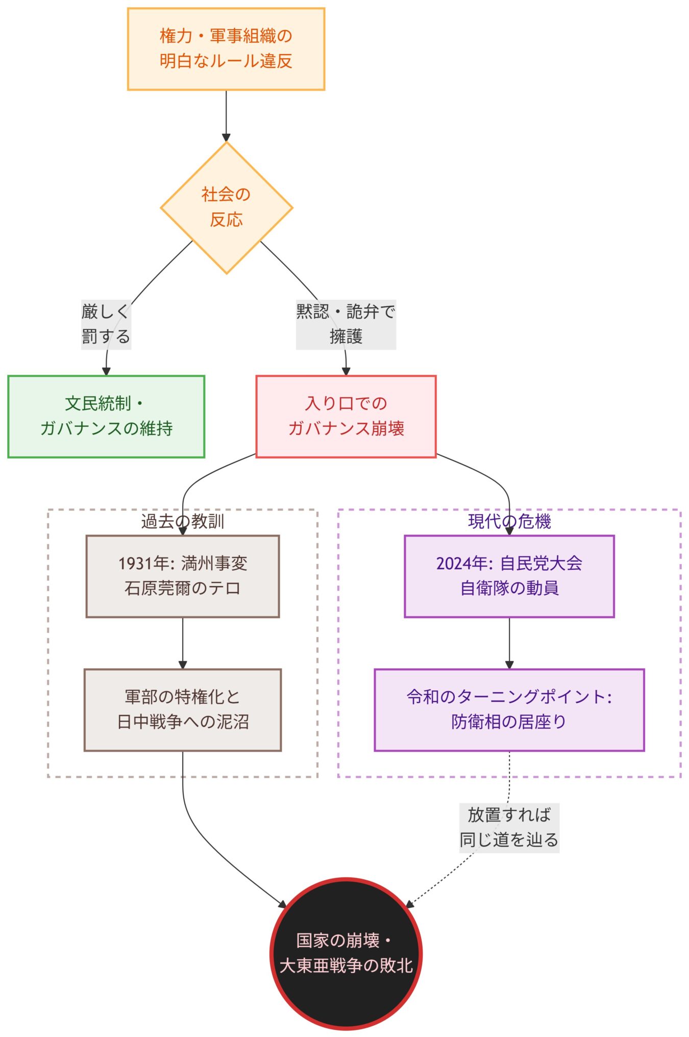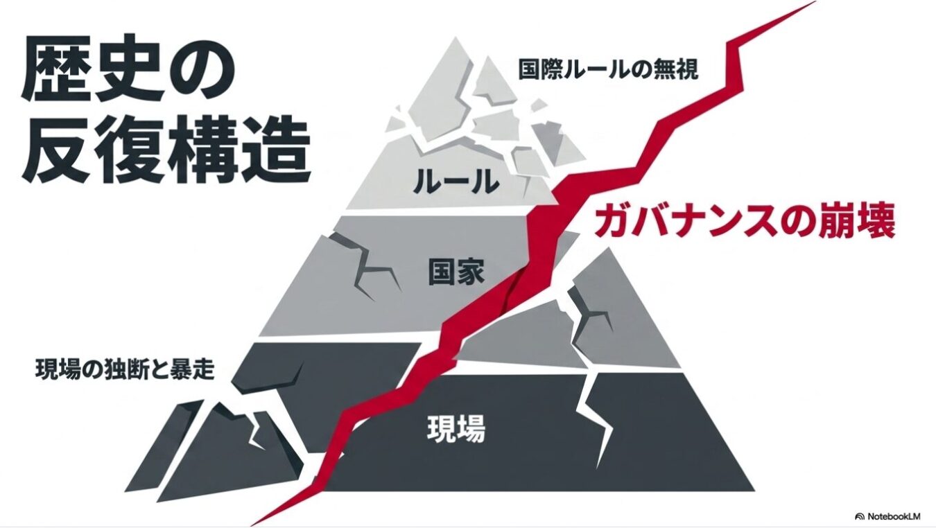 - 「エロ本前のガキ」の暴走: パリ不戦条約という国際ルールをたった8年で破った大日本帝国のように、入り口のルール違反を許容する社会は一瞬で崩壊する 。
