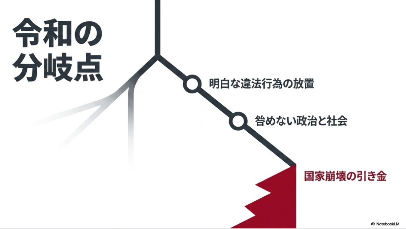 ここで白黒をハッキリさせず、「まあええやん」で済ませてしまえば、それは確実に「令和のターニングポイント(ゴーストップ事件)」になりますよ 。入り口でルール違反を許したツケは、必ず国家の崩壊となって跳ね返ってくる。