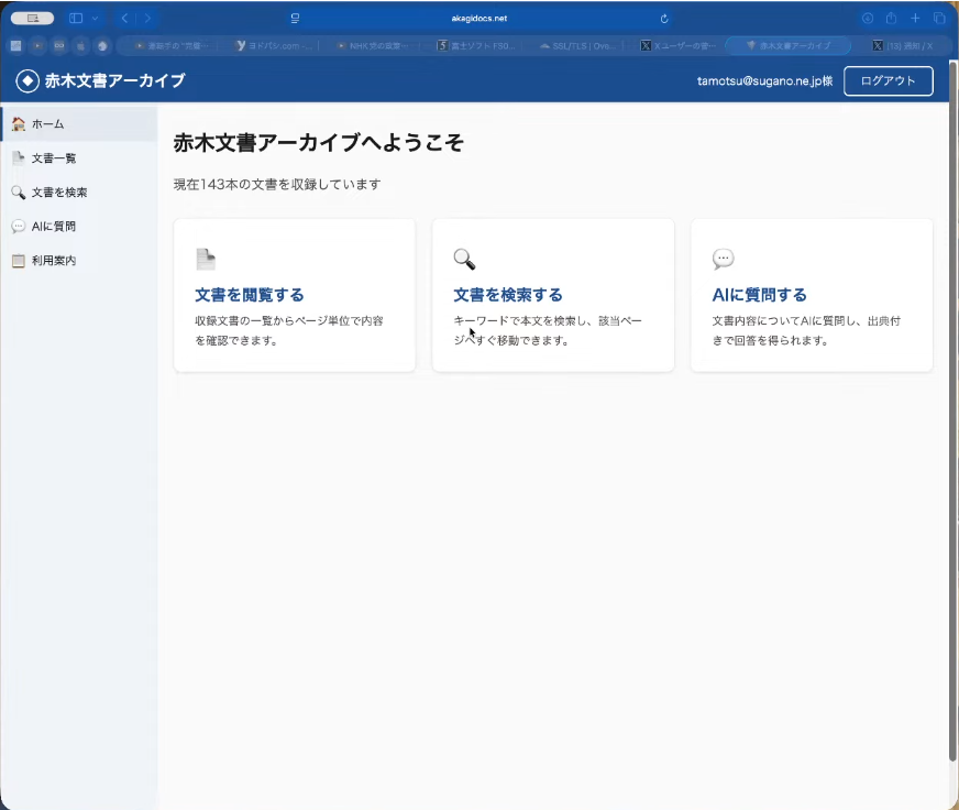 私がここ最近、何にかかりきりになっていたか。それは「赤木文書アーカイブ」というAIチャットボットシステムの開発だ。赤木さんの残した公文書を読み込み、AIが皆さんの質問に答えるという画期的なシステムである。