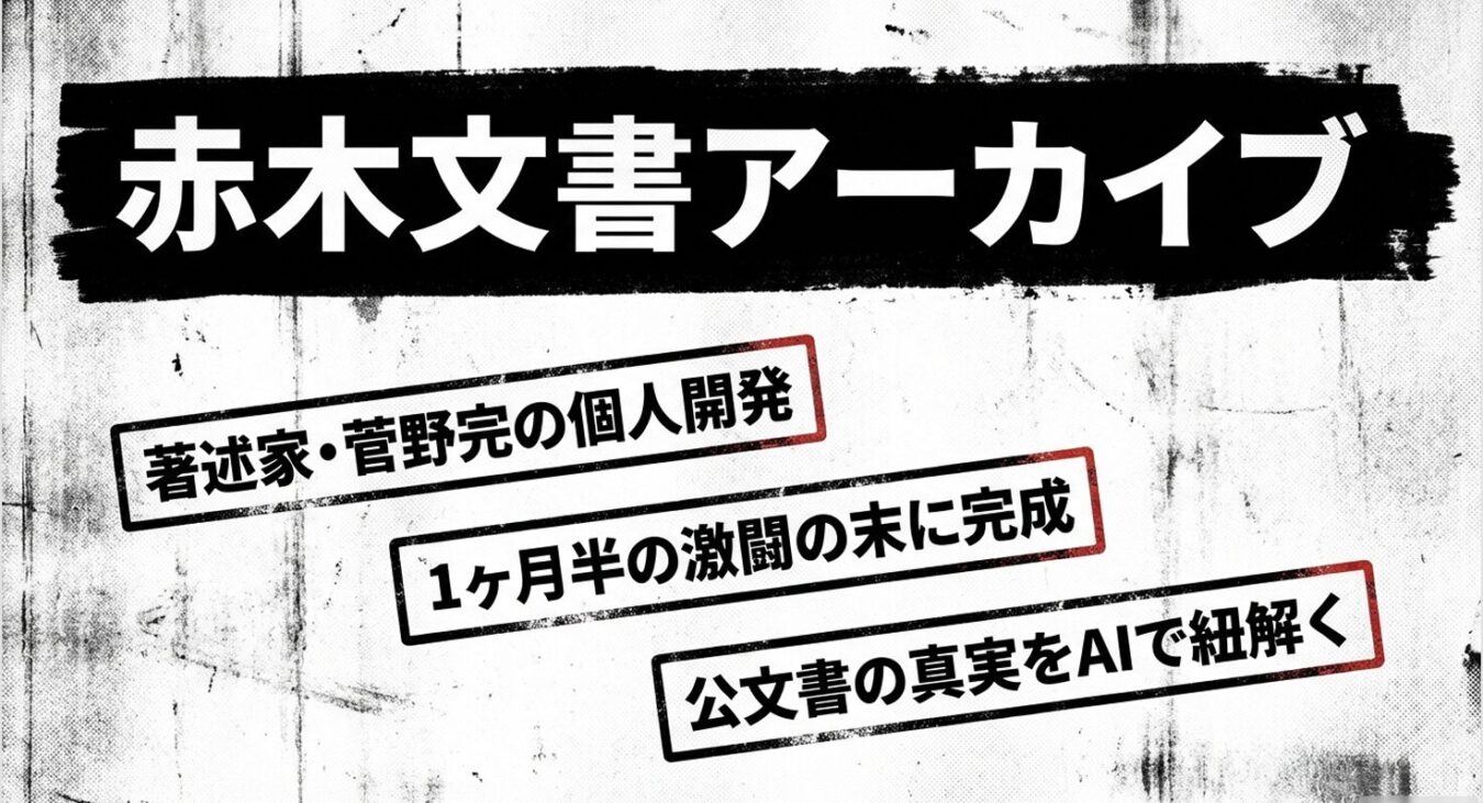 国家の意思決定の軌跡である「公文書」。その膨大なデータから真実を読み解く作業は、これまで多大な労力を要するものであった。しかし今、AI技術の発展がその壁を打ち破ろうとしている。 本記事では、著述家・菅野完氏が約1ヶ月半を費やし、個人開発でローンチに漕ぎ着けた「赤木文書アーカイブ(AI検索システム)」の裏側に迫る。大規模言語モデル(LLM)のAPIコスト問題を「ローカル環境の構築」で乗り越え、AI-OCRを駆使し、単なるテキストデータではなく「紙の実物の質感(ルック&フィール)」までをも再現した、執念の開発ストーリーである。 一個人が最新テクノロジーを駆使して「歴史の記録」に光を当てる時、我々に見えてくる「統治行為の本質」とは何か。技術と社会課題が交差する、熱き開発の記録をお届けする。