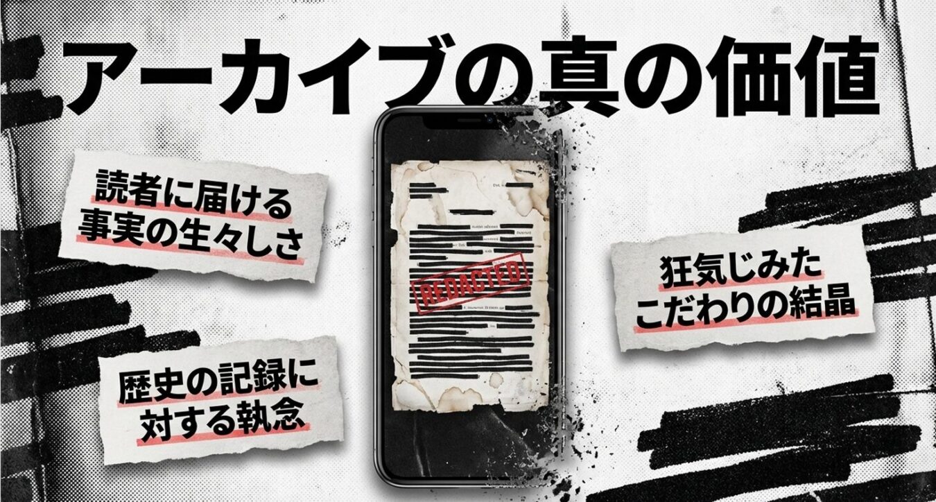単なるテキスト化ではない。事実の生々しさを、手触り感を伴って読者に届ける。これこそが、このアーカイブの真の価値であり、私の狂気じみたこだわりの結晶である。