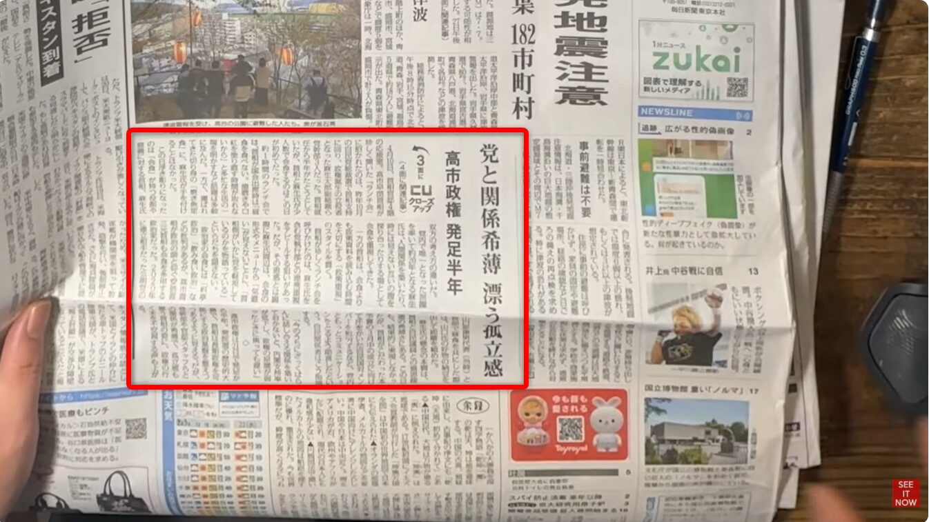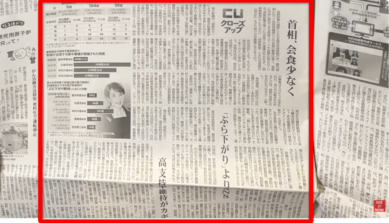 今日の読売の1面トップには、「根回しよりスピード 資料読み込みトップダウン」と、一見すると高市政権を褒め称えるような見出しが躍っています 。これを見て「読売は高市をかばっている」と勘違いするリベラルもいるでしょう 。読売新聞も、1面だけは義理を果たしたフリをしているのです 。