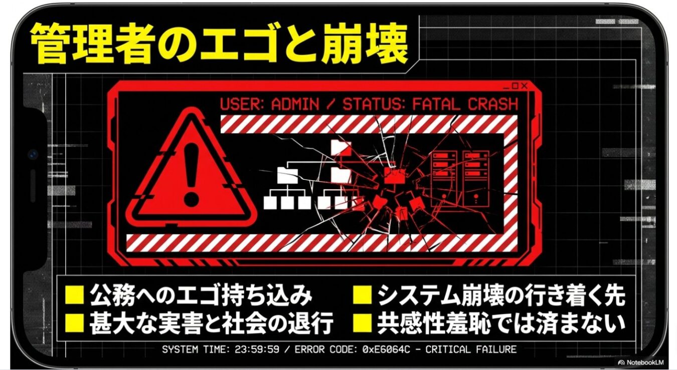 斎藤元彦や高市早苗、あるいは海の向こうのトランプを見ていて感じる「共感性羞恥」。これ、単に「うわ、痛いおっさんやな」で済む話やないんですよ。あいつらが公務にエゴを持ち込んだ結果、現実の社会システムにどれだけの「実害」と「退行」をもたらしているか。ええ加減、この絶望的な事実に気づかないとあきません。