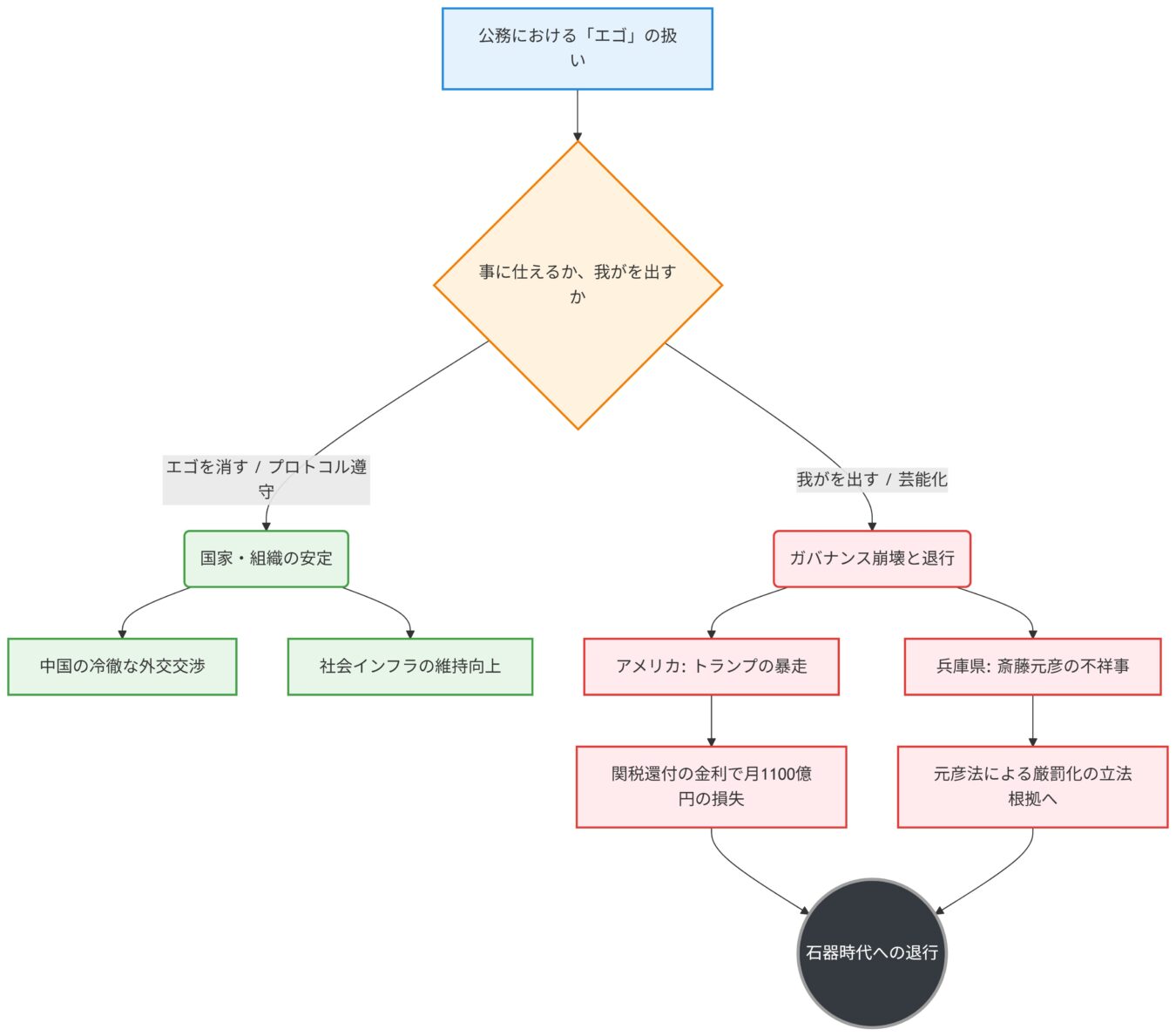 トランプのアメリカも、斎藤元彦の兵庫県も、本質は全く同じです。「事に仕える」ことを忘れ、エゴを暴走させた権力者を放置すれば、組織は確実に腐り、借金まみれになる。