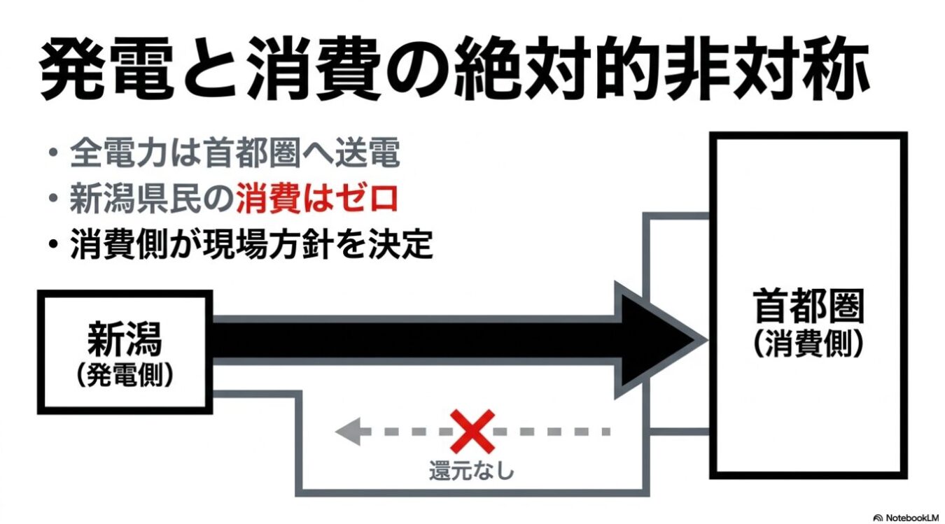 「立地自治体には補助金が来るからええやないか」と言うかもしれんけど、それを「植民地」って呼ぶんです。カネで頬を叩いてリスクだけを押し付ける、圧倒的な搾取の構造です。新潟は東京の植民地ちゃうぞ。新潟は新潟です。