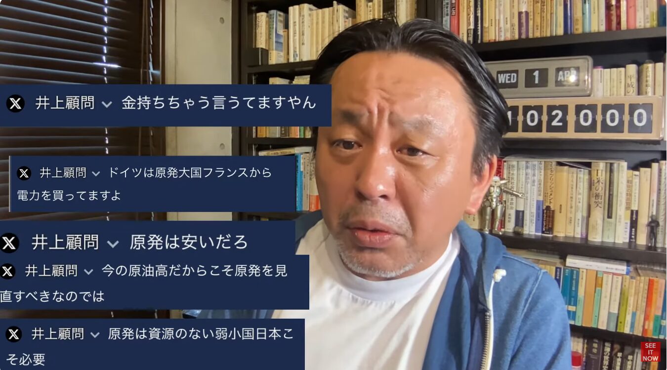 せやけど原発はどうや? タービン回して電気作った後も、核廃棄物の処理やら何やらで、1ワットも電気産んでへん事後に延々と莫大な金がかかり続けるんやで ? > この『付加価値を産む現場以外で金がかかりすぎる』っていう異常性に気づかず、こんな不効率な装置を『安い』『お得や』と思い込んでしまうその『ソロバン勘定の出来なさ』 。これこそが、金の使い方も知らん、金儲けが下手な貧乏人の弱者である何よりの証拠やねん 。ビジネスで金使う側の視点から考えたら、あんなもん不自然極まりないし、絶対に選ばへんわ 。」