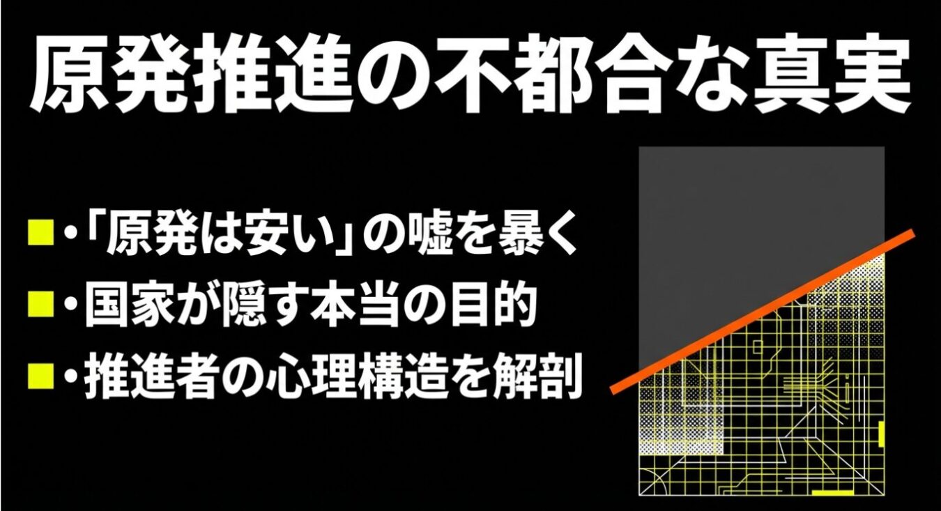「原発は安い」――この神話を、いったい誰が、何のために信じているのでしょうか? 脱原発を果たしたドイツの驚異的な電力事情と、莫大な事後コストがかかる原発の不都合な経済的真実。そして、非効率なシステムをあえて推進したがる人々の根底にある「弱さ」と「有害な男らしさ」の心理構造を徹底解剖します。