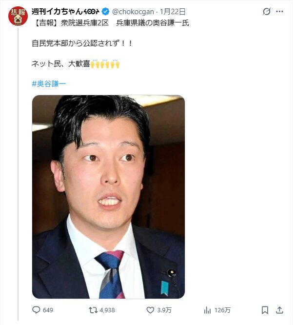 ■ 【徹底解説】兵庫2区「奥谷謙一公認漏れ」の真相と、斎藤元彦信者の「底が抜けた」異常性について
