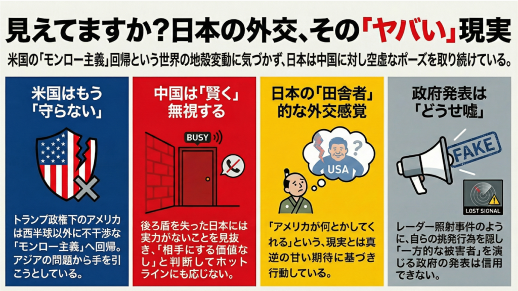 ホットライン不通問題は、我々がもはや対等な交渉相手と見なされていないという、パワーバランスの変化を象徴していた。そしてレーダー照射事件は、自らの行動を棚に上げて相手を非難するという、歴史に根差した欺瞞の体質を露呈させた。これらは、日本の外交と安全保障政策が、もはや現実から乖離した砂上の楼閣と化していることを示している。