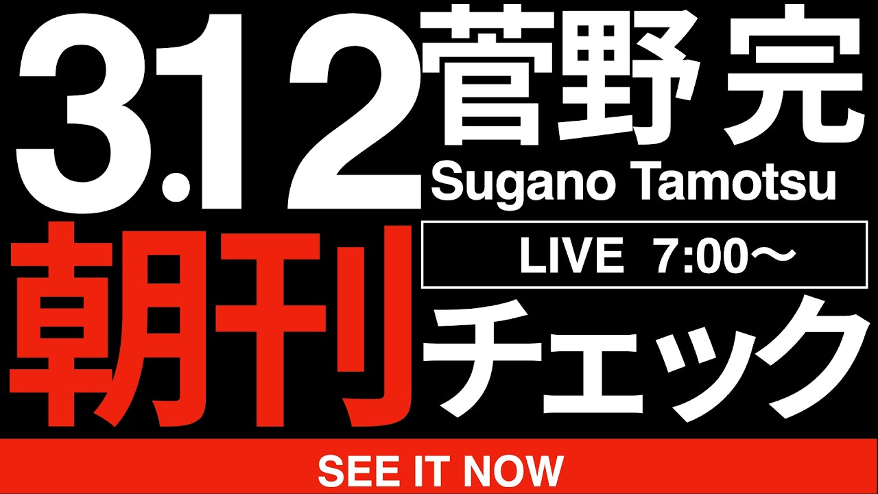 2026/3/12(木)朝刊チェック:高市早苗と斎藤元彦がそっくりに見える件