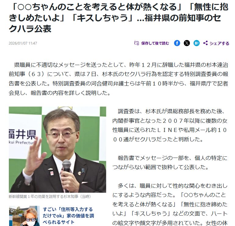 1. 福井県の先例:説明責任を果たしたセクハラ辞任事案
