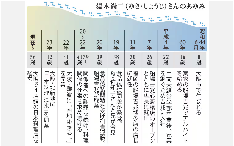 事件後、彼は「吉兆」という重すぎる看板を捨て、「南地ゆきや。」という自らの名を冠した店を開いた。地道な努力を重ね、今や大阪市内で4店舗を経営するまでに成功を収めている。この再起の物語を決定的なものにする、胸を打つエピソードがある。