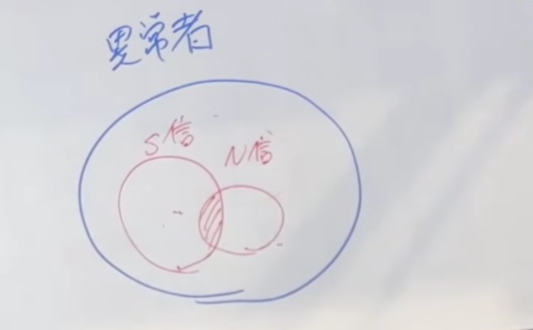 • 斎藤知事の支持者は「N国(NHKから国民を守る党)」的な集合体の一部であり、「異常者」という大きな円の中にN国や斎藤支持者が含まれると、ベン図を用いて説明した。
