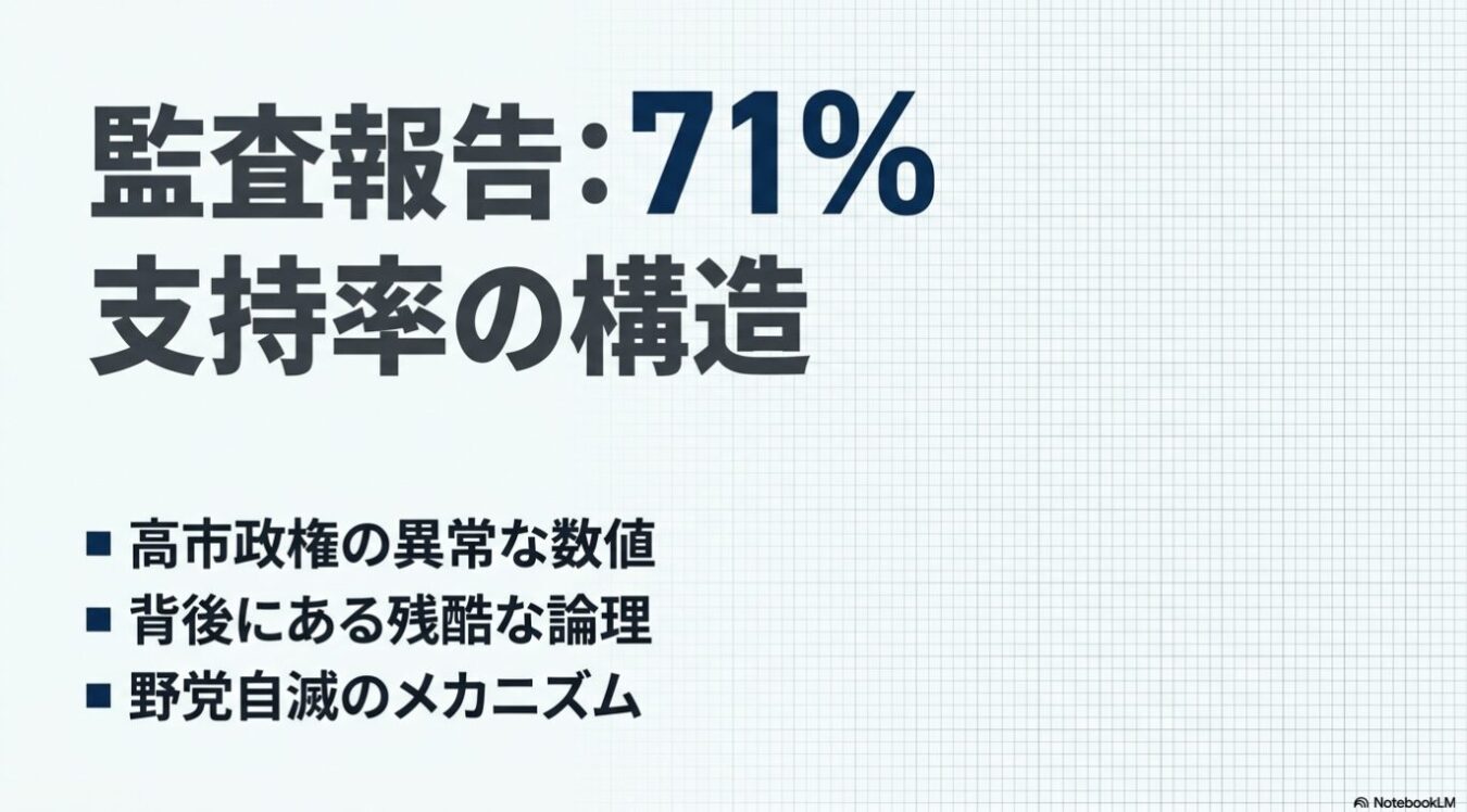 対抗馬がおらんから消去法で選ばれてるだけやのに、なんであんな「カレー丼」に大衆が71%も支持率を与えて異常に熱狂してまうのか。その裏には、もっとドロドロした人間の業みたいなもんが隠されとるんですわ。