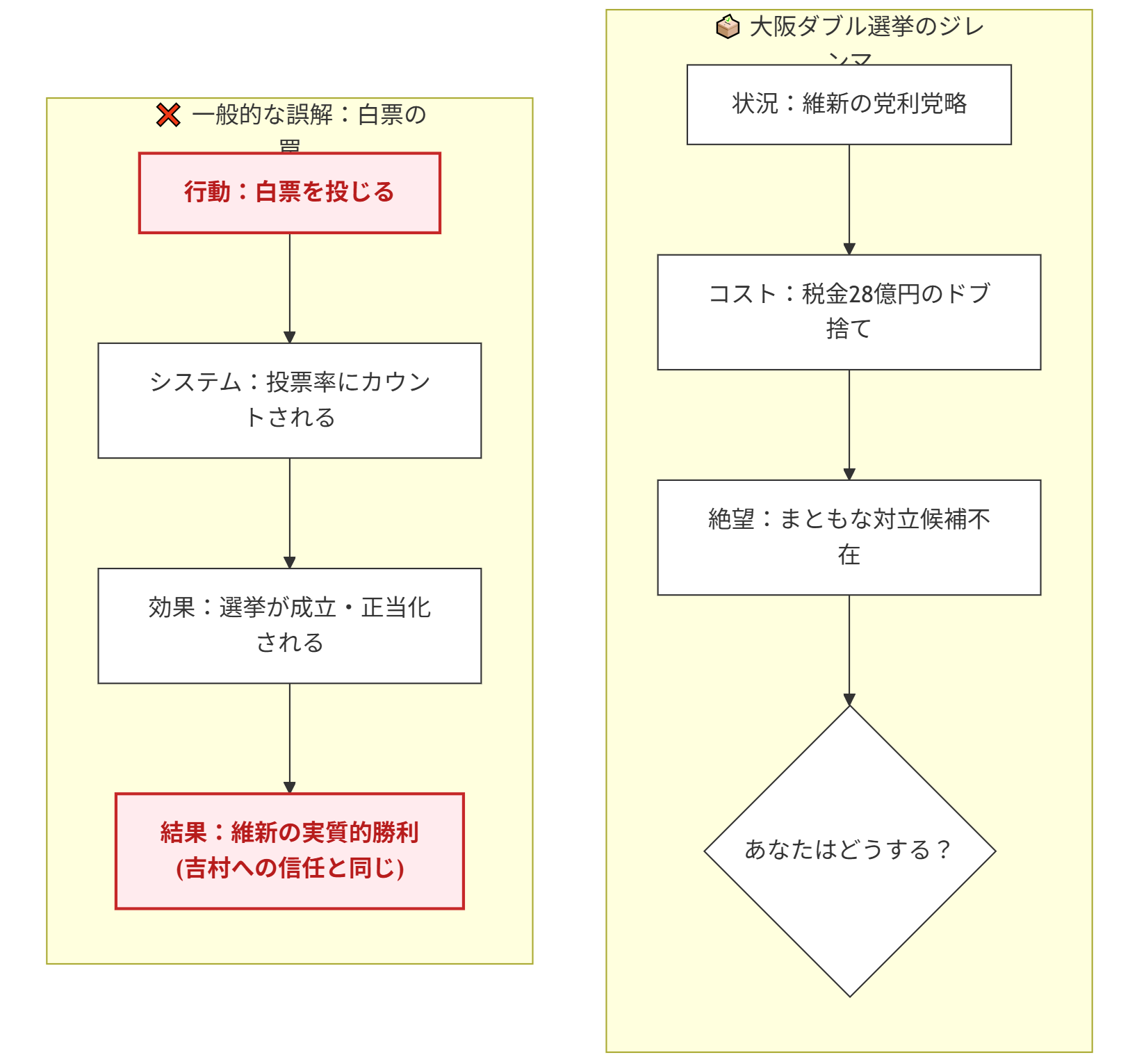 結果として、あなたの白票は「吉村洋文への信任」と同じ効果を持つ。