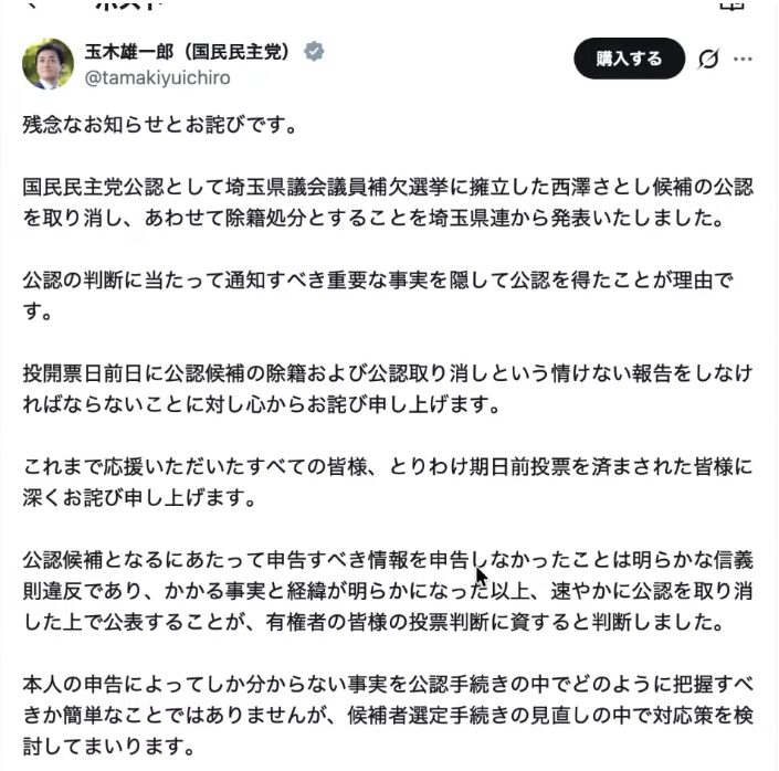 さて、こんな人間味溢れる銭湯の話から一転して、今度は永田町の底辺の話をしよう。 玉木雄一郎氏が率いる国民民主党の話題である。先日も、埼玉の県議会補欠選挙に擁立した候補者の公認を取り消し、除籍処分にしたと発表があった。 正直言って、国民民主党からとんでもない人物が出てきて公認が取り消されるというのは、もはや週に一度の恒例行事と言っても過言ではない。吉本新喜劇で、未知やすえが登壇したのに誰も容姿をイジらずに終われば観客がズッコケるのと同じ理屈だ。定期的な不祥事がない国民民主党など、お約束のネタをやらない新喜劇のようなもので、もはや存在意義がないに等しい。議員や候補者が法律違反をして辞めていくのが、この党の平常運転なのだ。