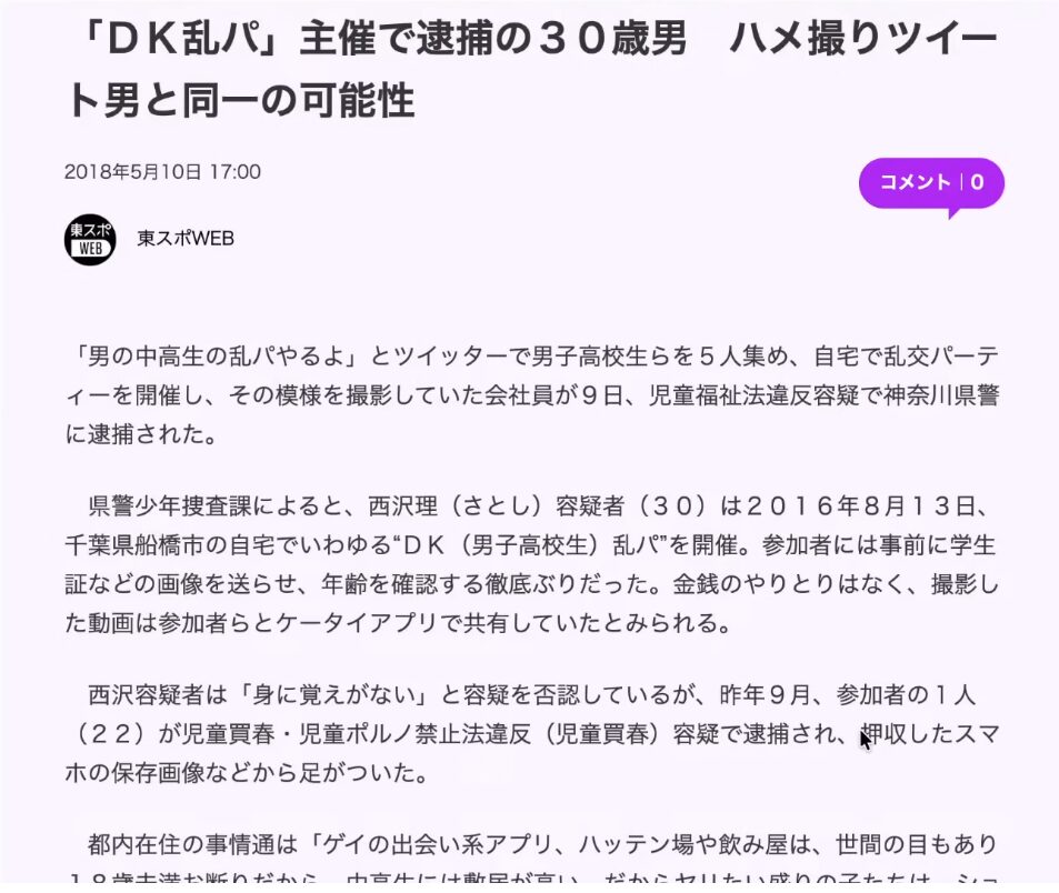 今回公認を取り消された人物が何をしていたかといえば、中高生の男子を集めて乱行パーティーを主催し、児童ポルノ禁止法違反で逮捕されていたのだ。その前科を隠して公認申請し、見事に公認を得ていたのである。