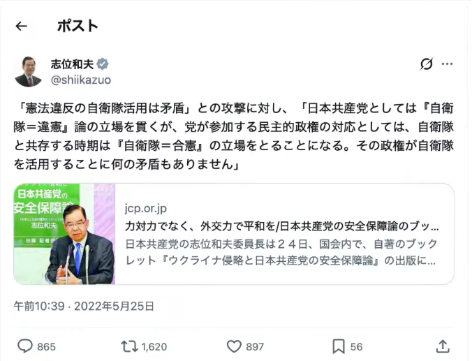 この「憲法を道具として使い倒す」という点において、実は共産党の歴史的転換が良い例になる。昨今、共産党は「自衛隊は違憲だが、急迫不正の事態には活用する」という現実路線を打ち出しているが、これをご都合主義だと笑うのは浅はかだ。ここには強烈なリアリズムと、憲法制定時の意外な歴史が隠されている。